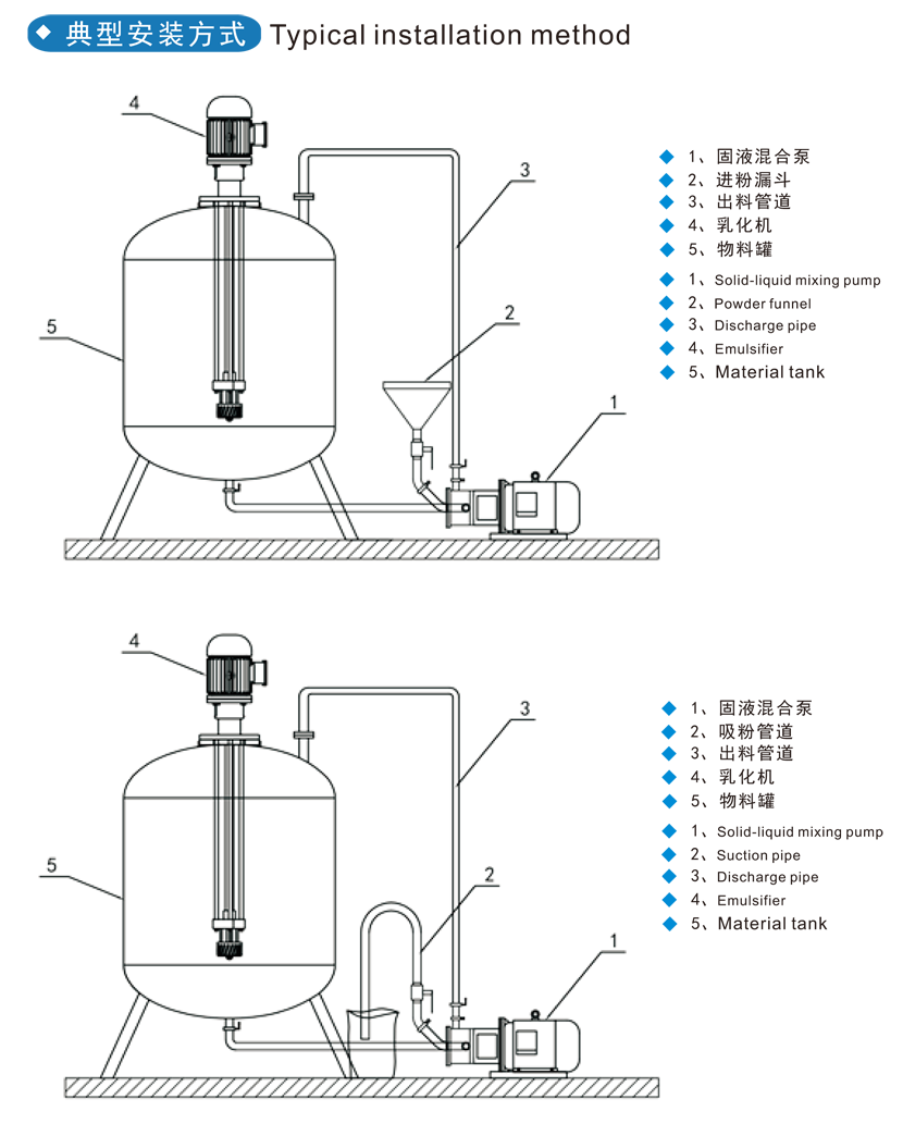 固液混合泵的應(yīng)用: 水粉混合泵針對粉末狀固體與液體高效混合的專用設(shè)備。泵自身產(chǎn)生真空,將粉末直接導(dǎo)入液流中,能迅速完成加粉、加料、濕潤,同時能在真空條件下將其分散在液體中。避免了團(tuán)聚,不產(chǎn)生團(tuán)聚塊狀物,不會在液流的表面、攪拌軸和容器壁上行程結(jié)皮現(xiàn)象,傳統(tǒng)處理工藝中所必須的環(huán)保輔助設(shè)施在這里都將不再需要。